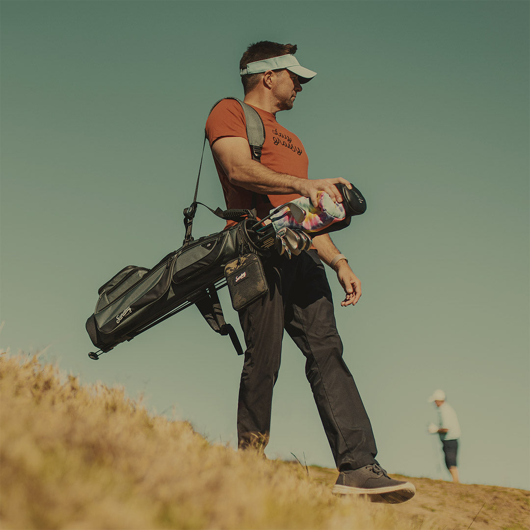 Meet the Loma XL! The Loma's bigger brother and our second golf bag release. At 1.5 kilograms, the Loma XL is a lightweight golf bag built to carry 8 clubs comfortably. We took the same iconic Loma design and made it slightly bigger to accommodate a couple more clubs while adding a double strap. With the ability to easily carry a half set during a full round, this is is a minimalist golfers dream bag.